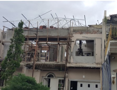 Pada tahap ini, bentuk rumah mulai terlihat. Kualitas pemasangan sangat mempengaruhi hasil akhir, terutama kerapian dinding dan kekuatan bangunan.