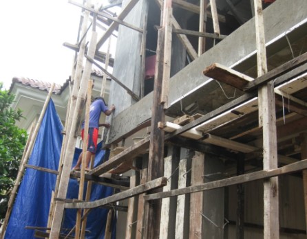 - Pemasangan dinding (bata merah, batako, atau hebel)